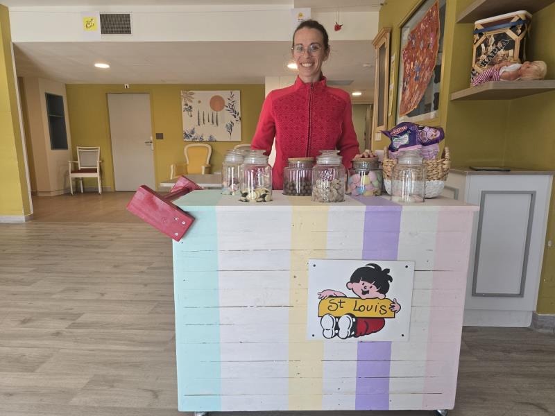 Dans le cadre de l'esprit pionnier, sur proposition de Jessica des UVP et avec l'aide du chef cuisinier, un chariot mobile de distribution de bonbons à été créée en 2025. Depuis, tous les 15 jours, le chariot se promène dans les salons et en chambre : chaque résident choisi son bonbon et des échanges se font ainsi naturellement, souvent basés sur des souvenirs qui remontent avec le goût des sucreries. Les résidents les plus dépendants ne sont pas oubliés : des crèmes, des chocolats, des compotes prennent le relais. L'objectif est de stimuler les capacités sensorielles des résidents afin de favoriser le bien être, la communication et les souvenirs.