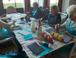 Suite à ce partage, les résidents décident d’offrir leur expression aux aidants. Dans le cadre de la semaine bleue, cette séance fait appel à l’estime de soi, à la motricité fine, le plaisir de faire ayant pour conséquence d’apaiser les souffrances.