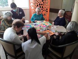 Les ateliers proposés sont toujours fait avec plaisir dans un but bien précis : ils permettent de se situer dans le temps , ce qui est très important pour les résidents .