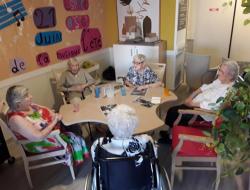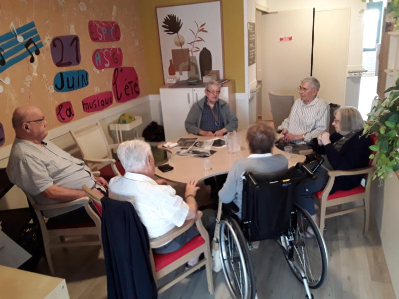 L’atelier a été proposé à deux groupes, de façon à ce que chacun puisse s’exprimer. Nous avons évoqué la rentrée, qui a donné un joli moment de partage. Se souvenir et partager est très important pour les résidents « Partager son savoir » comme ils disent…..