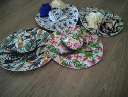 La base est un support carton recouvert de papier, de différents motifs au choix. Nous avons utilisé : de la colle, des ciseaux, du rafias et du papier crépon pour la réalisation de fleurs, petite cordelette colorée pour finaliser le tour du chapeau et le tour est joué. !