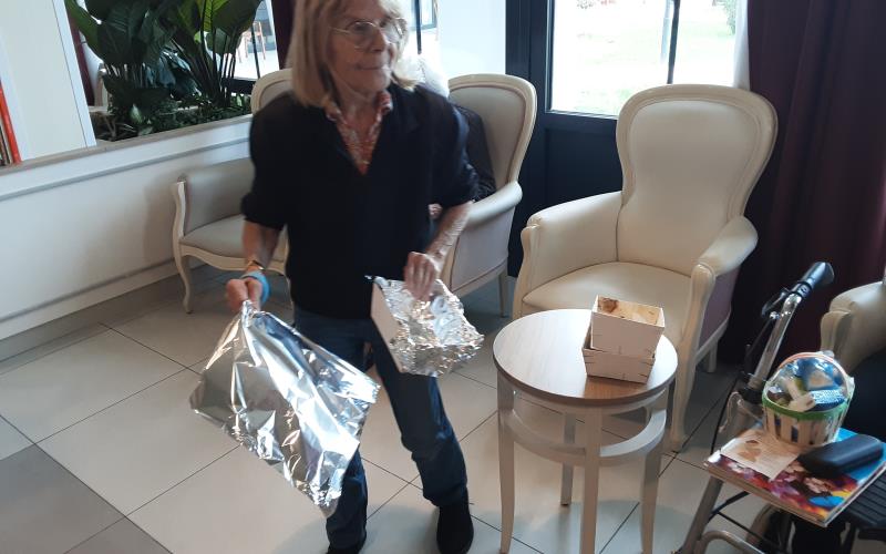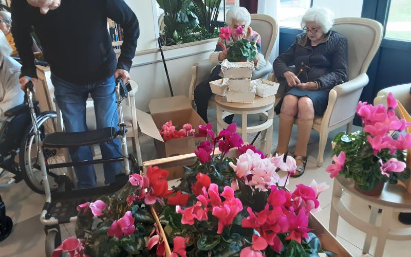 La société Syngenta de Sarrians (Vaucluse), a offert à la Résidence Saint Louis une vingtaine de cyclamen ; les résidents ont confectionnés des soucoupes à partir de mini cagettes en bois et de papier aluminium afin de les arroser.