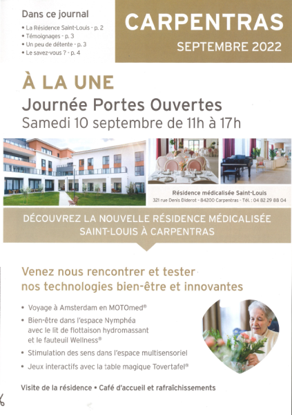 La résidence Saint-Louis organise une journée portes ouvertes de ses nouveaux locaux le Samedi 10 Septembre 2022.