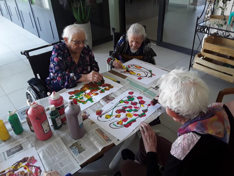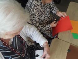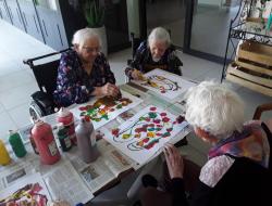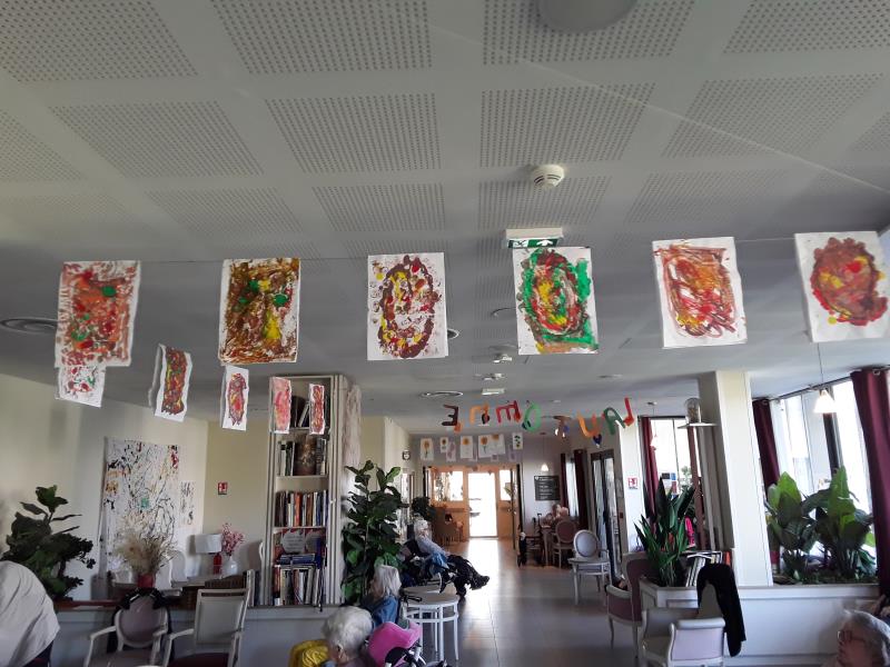 Chacun a participé à sa manière car il n'y a pas de bonnes manières . Les résidents sont ravis de pouvoir profiter de leurs œuvres qui sont installées au grand salon au regard de tous .