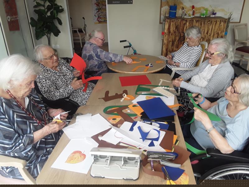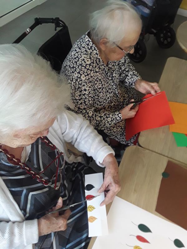 * le découpage des lettres du mot Automne avec une décoration de saison pour quelques résidents