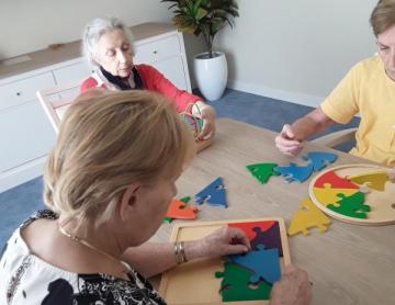 Nous avons travaillé différents sens notamment, le vue, le toucher, l’odorat ainsi que la praxie et la dextérité, dans le plaisir et la convivialité