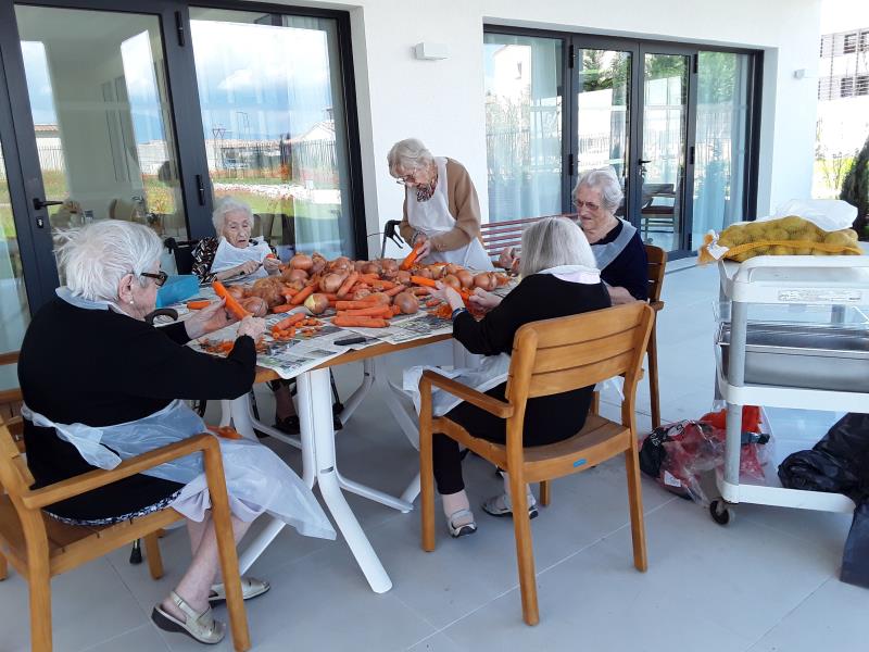 Cet atelier permet de retrouver les gestes du quotidien, les odeurs, le plaisir de faire et bien sûr de se sentir utile en pouvant aider l’équipe de cuisine.