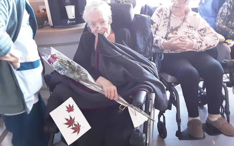 Pour clôturer cette journée, un gâteau fait maison a été partagé et les 6 résidents fêtés ont reçu roses et cartes d’anniversaires réalisées par les résidents.