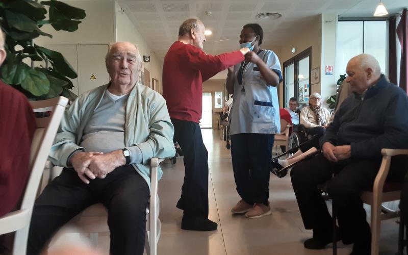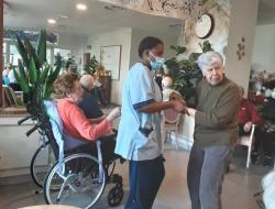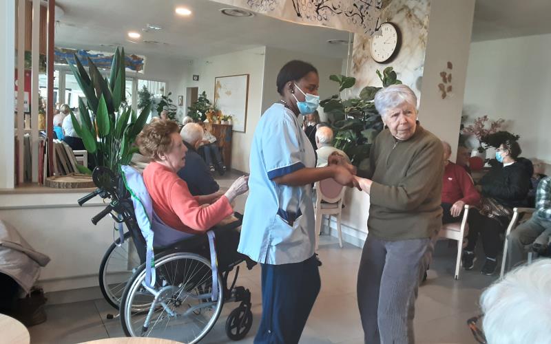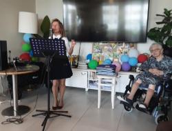 En début d’après-midi c’est Marina, chanteuse qui orchestrait pour la plus grande joie des résidents et des familles ; ce concert a eu lieu dans le grand salon permettant ainsi d’accueillir le plus grand nombre.