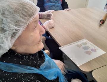 Pour clôturer cette journée, un gâteau fait maison a été partagé et les résidents fêtés ont reçu roses et cartes d’anniversaires réalisées par les résidents.