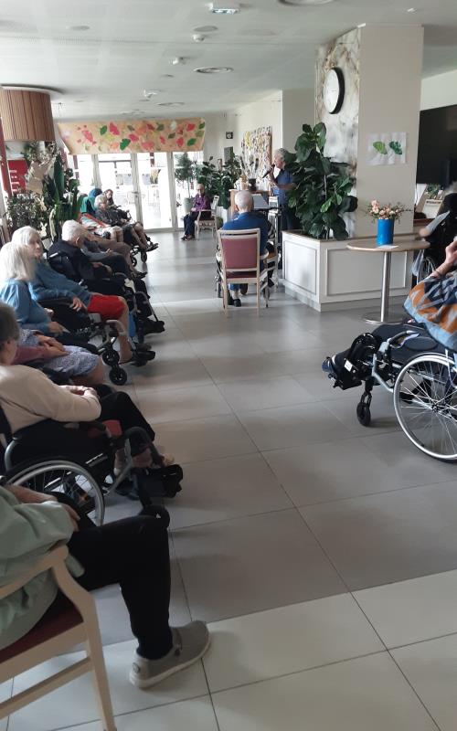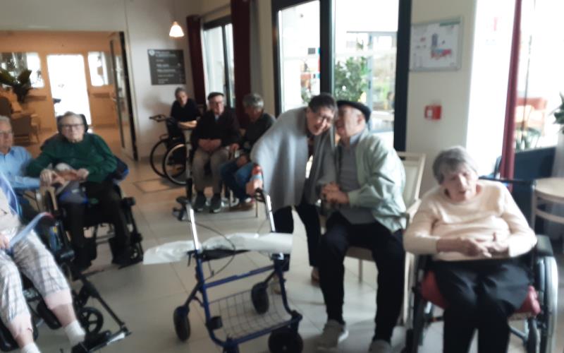 En début d’après-midi c’est CM EVENTS avec son chanteur qui orchestrait pour la plus grande joie des résidents, Ce concert s’est déroulé dans le grand salon permettant ainsi d’accueillir le plus grand nombre de personnes. La première partie du concert s’ouvre à partir des livrets de la chorale 2026, une répétition et ouverture avec l’intégralité de la musique; puis, pour la deuxième partie du concert, le chanteur de CM EVENTS nous a proposé une play list des années 60 à 80.
