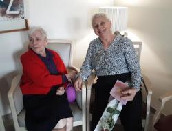 Pour clôturer cette journée un gâteau fait maison a été partagé et les résidents Ont reçu roses et cartes d’anniversaires réalisées par les résidents.