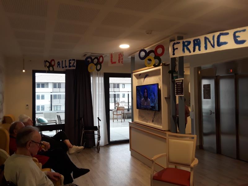 Les artistes sont prêts à soutenir nos sportifs. Un temps télévision sera régulièrement proposé aux résidents qui souhaitent suivre les compétitions.