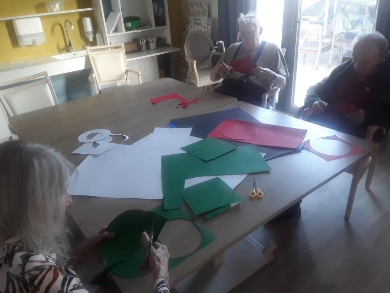 Au sein des unités de vie protégées, un atelier créatif a été proposé pour soutenir les athlètes Français qui participent aux jeux olympiques .Nous avons créée le"QG des supporters" qui se trouve aux hirondelles.