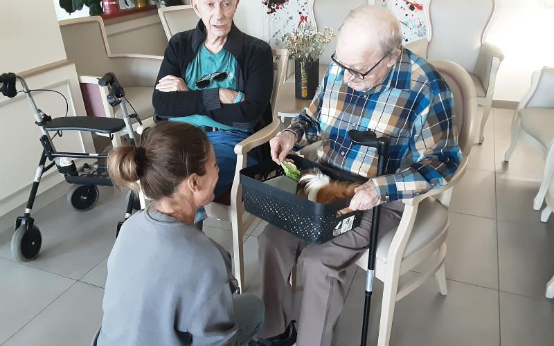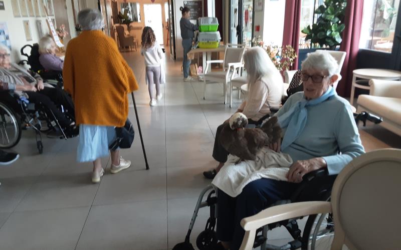 Tous les mois (hors période estivale) la résidence reçoit la visite des animaux, lapins, hamster, poules, moutons, chèvres, et parfois un poney.