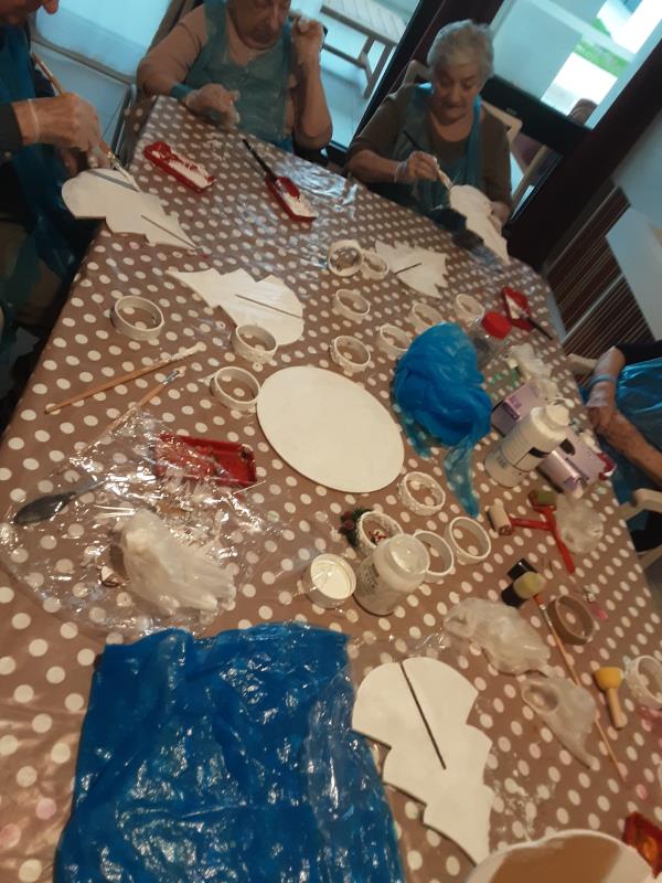 Nous offrons aux résidents l’opportunité de créer leurs propres décorations de Noël par la mise en place de ces ateliers. Les idées ne manquent pas : décorations pour le sapin, décorations pour la table. Toutes les petites mains s’affairent pour le jour J.