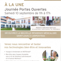 Publiée le 07/09/2022Bonjour, La résidence Saint-Louis organise une journée portes ouvertes de ses nouveaux locaux le Samedi 10 Septembre 2022. Nous vous attendons nombreux entre 11h à 17h. Bien Cordialement Lire la suite