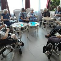 Publiée le 08/08/2022Nous avons fait l’acquisition de deux tovertafel. C’est un outil qui nous permet de proposer des animations aux résidents en travaillant la dextérité, la concentration, la mise en mouvement au travers de mini-jeux. Le concept a été créé par un couple de scientifiques pour leurs grands-parents et s’est répandu à travers le monde. Seul ou en peti [...] Lire la suite