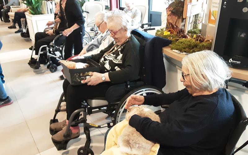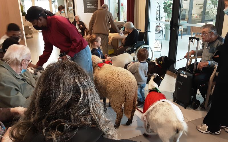 Tous les mois (hors période estivale), la résidence reçoit la visite des animaux : lapins, hamster, poules, moutons, chèvres, et un poney.