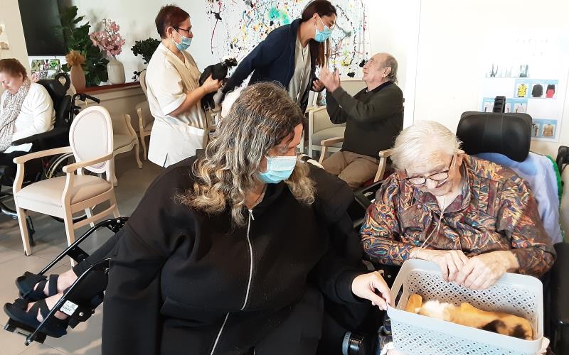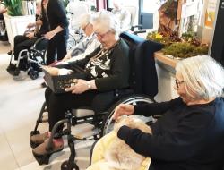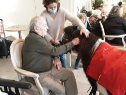 L’animal sert de médiateur entre l’accompagnant et le résident, favorisant ainsi la conversation. Et parfois, nous recevons des enfants.