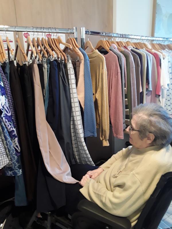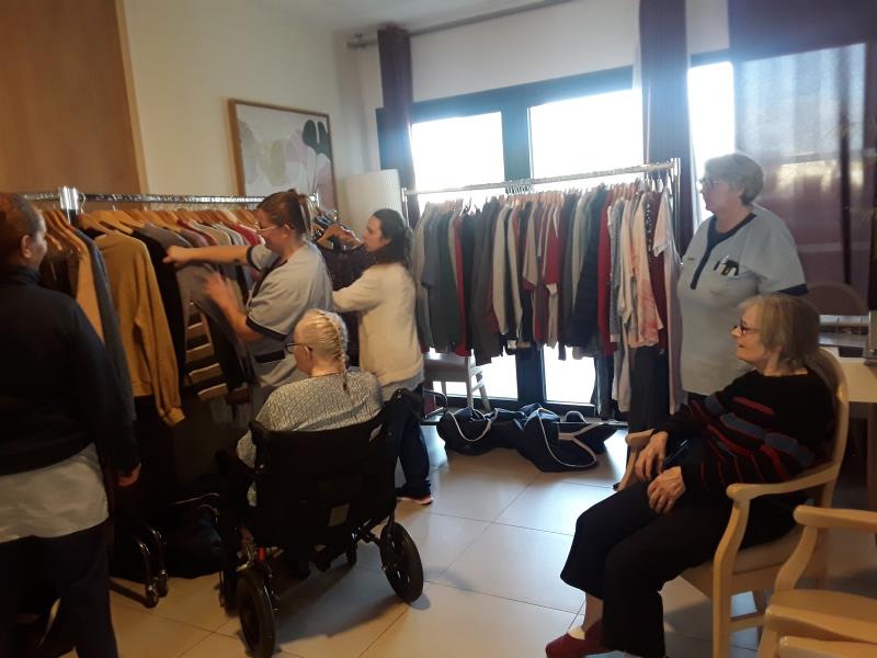 Les résidents sont venus regarder ou acheter ; ils ont la liberté de pouvoir toucher, de donner leur avis sur la matière ou la couleur .Un moment de partage et d 'échange .